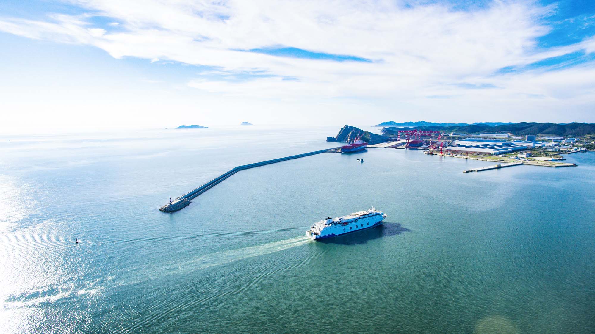建设规模:防波堤及护岸总长2130米,30万吨级舾装码头一个。