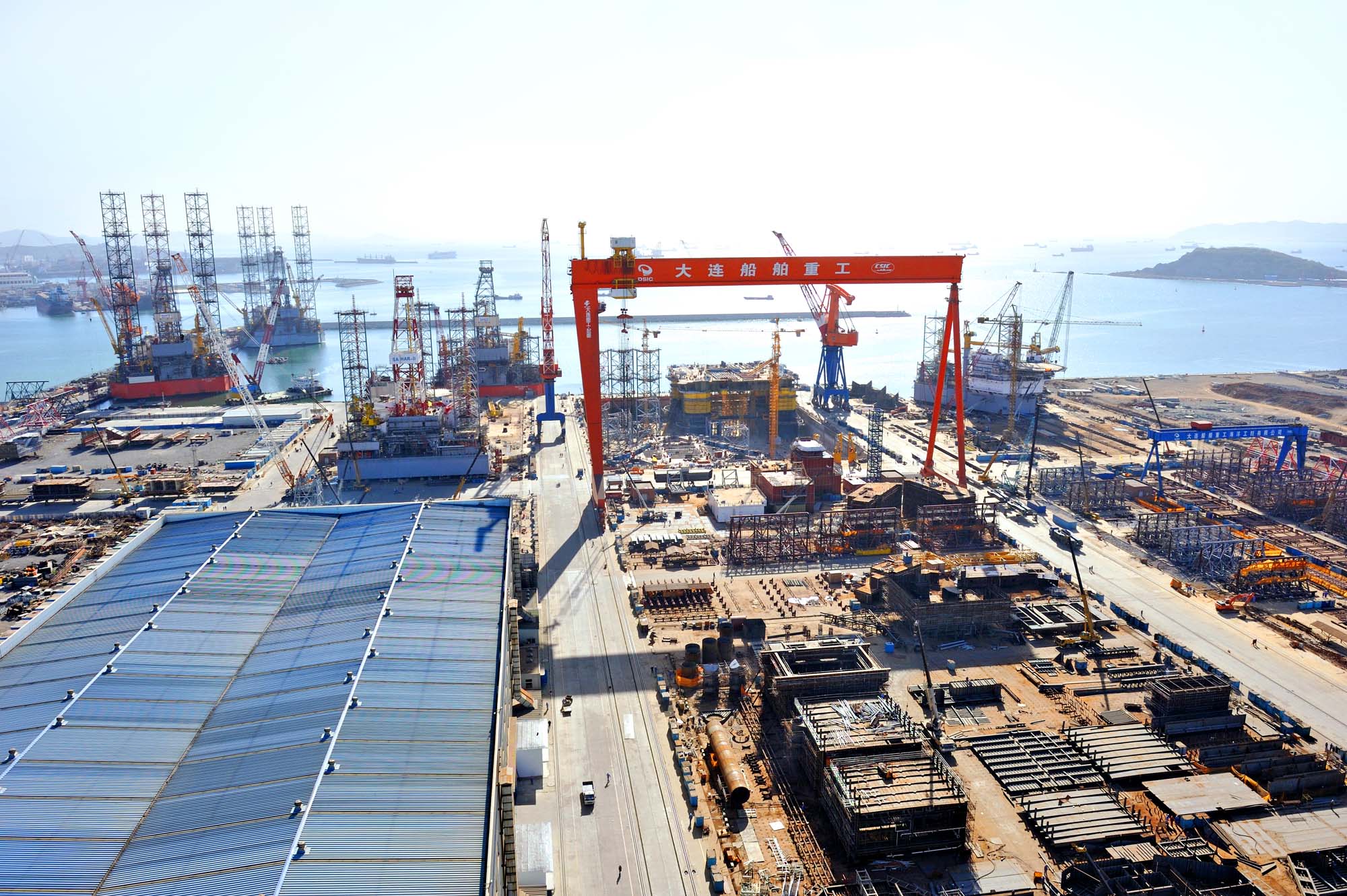 建设规模:建设平台专用坞1座(主尺度分别为181×120×12.7米);舾装码头和顺岸码头各一座;平台下坞滑道总长190米;防波堤总长767米;钢料加工厂房、装焊厂房、喷涂厂房各一座。厂区面积56.47公顷。