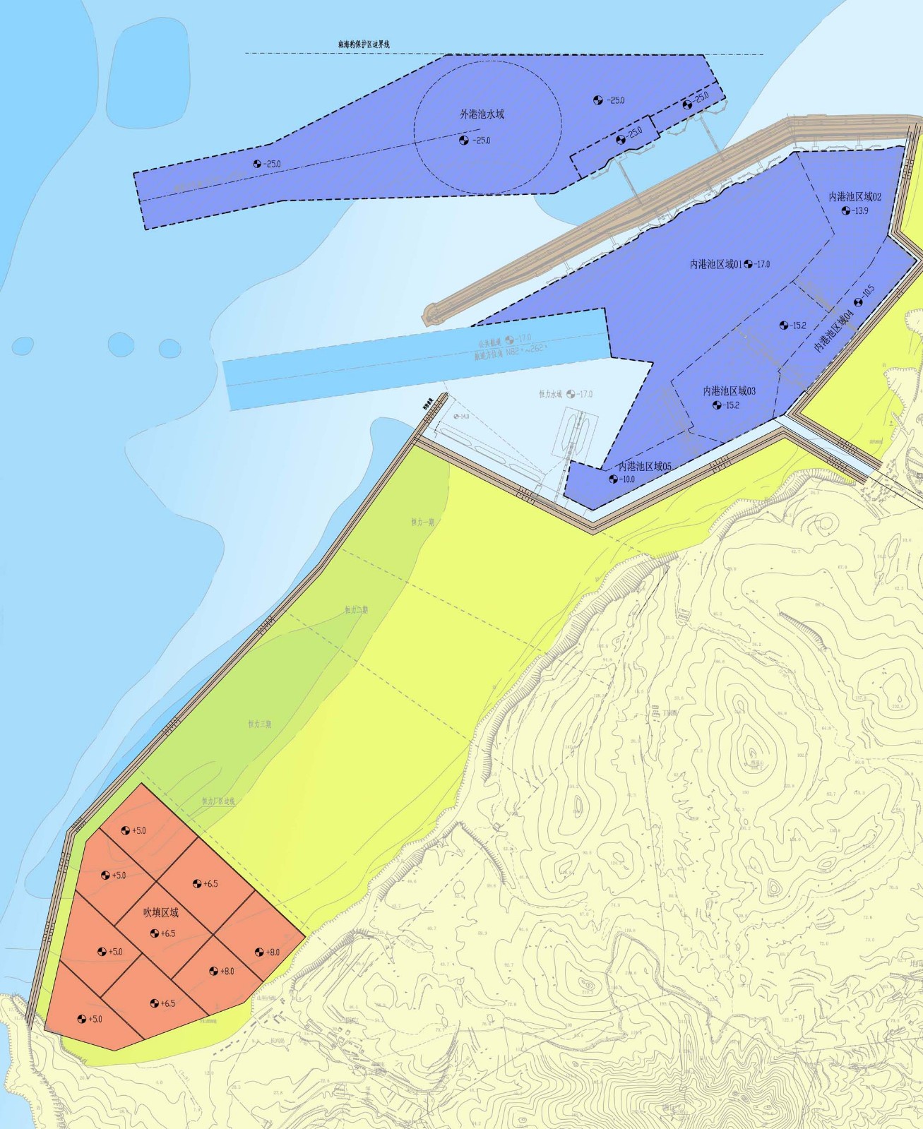建设规模:内、外港池疏浚总面积441万平方米,总疏浚方量1817立方米。