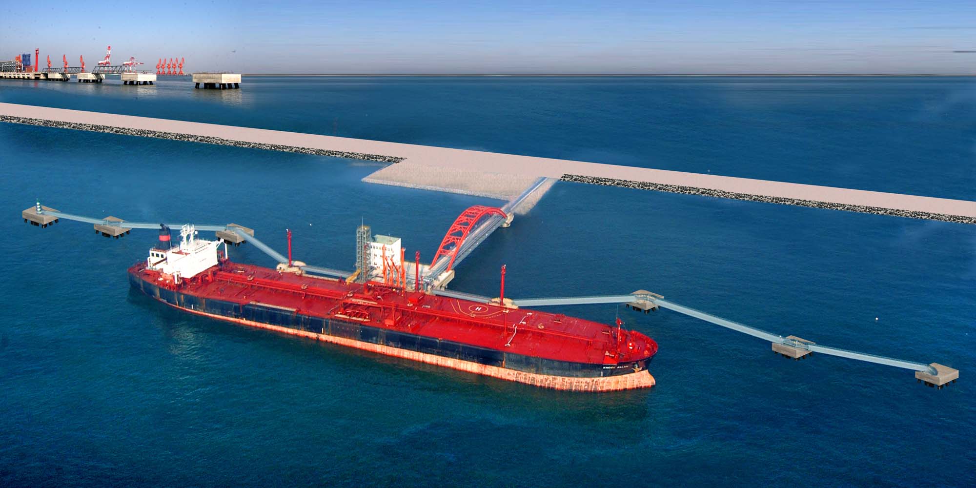 为解决华北石化企业原料短缺问题,中石化集团在曹妃甸港区建设30 万吨级进口原油接卸码头引桥工程连接码头和引堤,是原油传输的唯一通道。