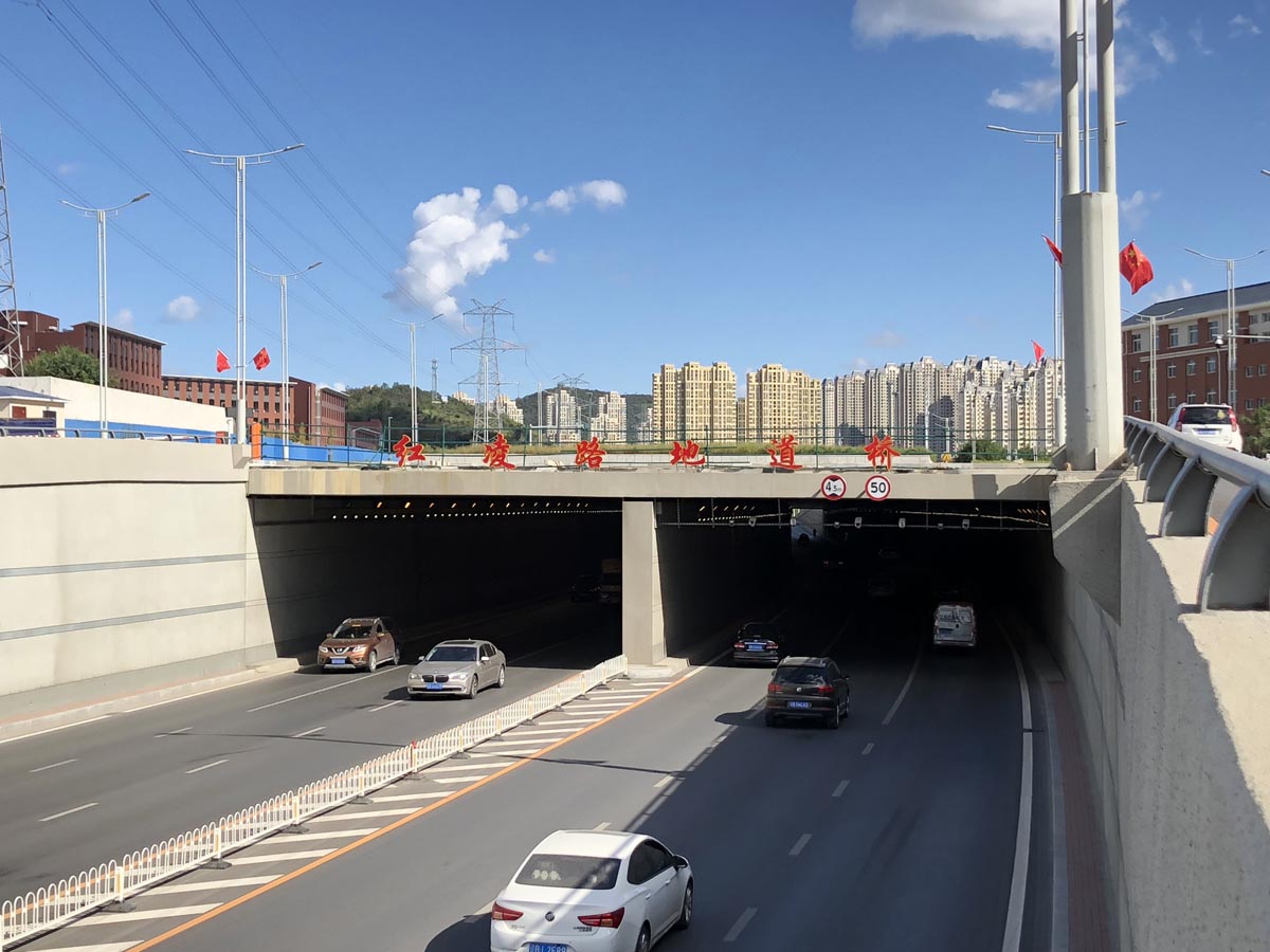 工程全长约852米,其中地道桥长340米,地道桥采用双孔实现双向交通布置为双向6车道。