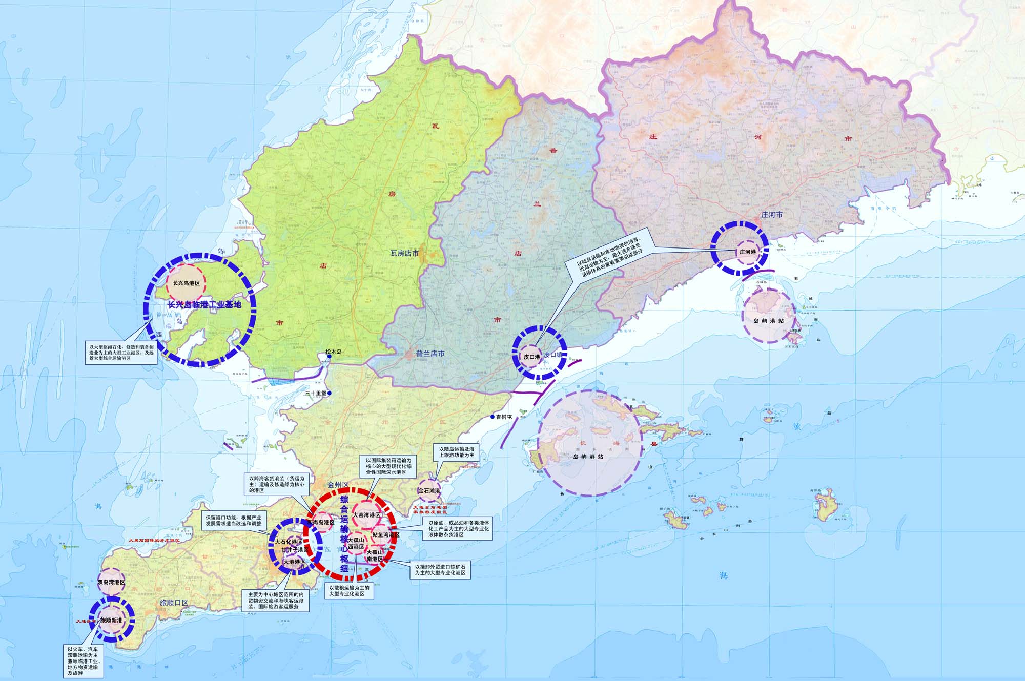 大连港将形成以大孤山半岛及周边大窑湾、鲇鱼湾、大连湾组成的“一岛三湾”内各港区和长兴岛港区为重点,其他港区(站)为补充的总体发展格局。