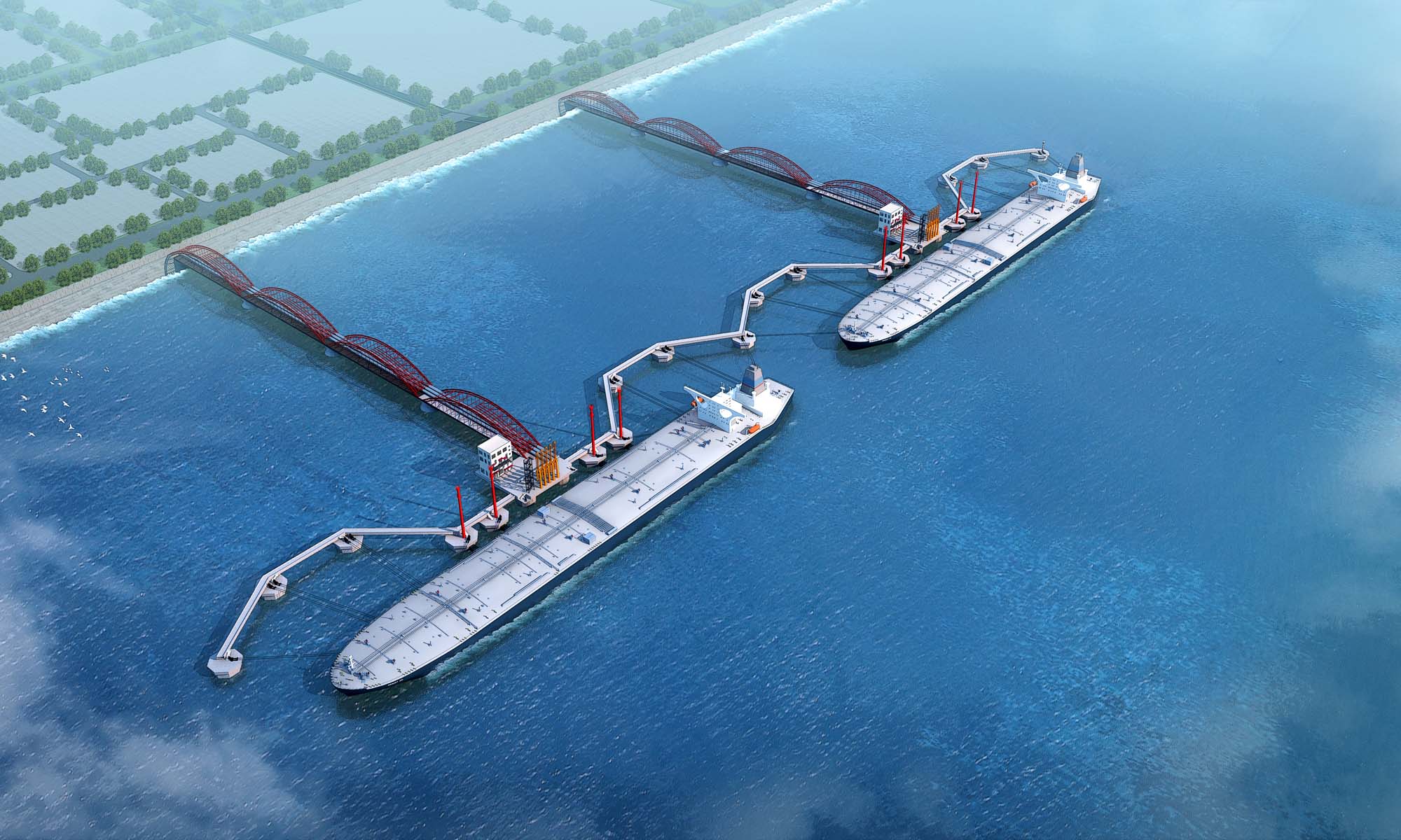 建设规模:30万吨级原油码头2个(向下兼顾至10万吨级油船),泊位通过能力为3200万吨/年。