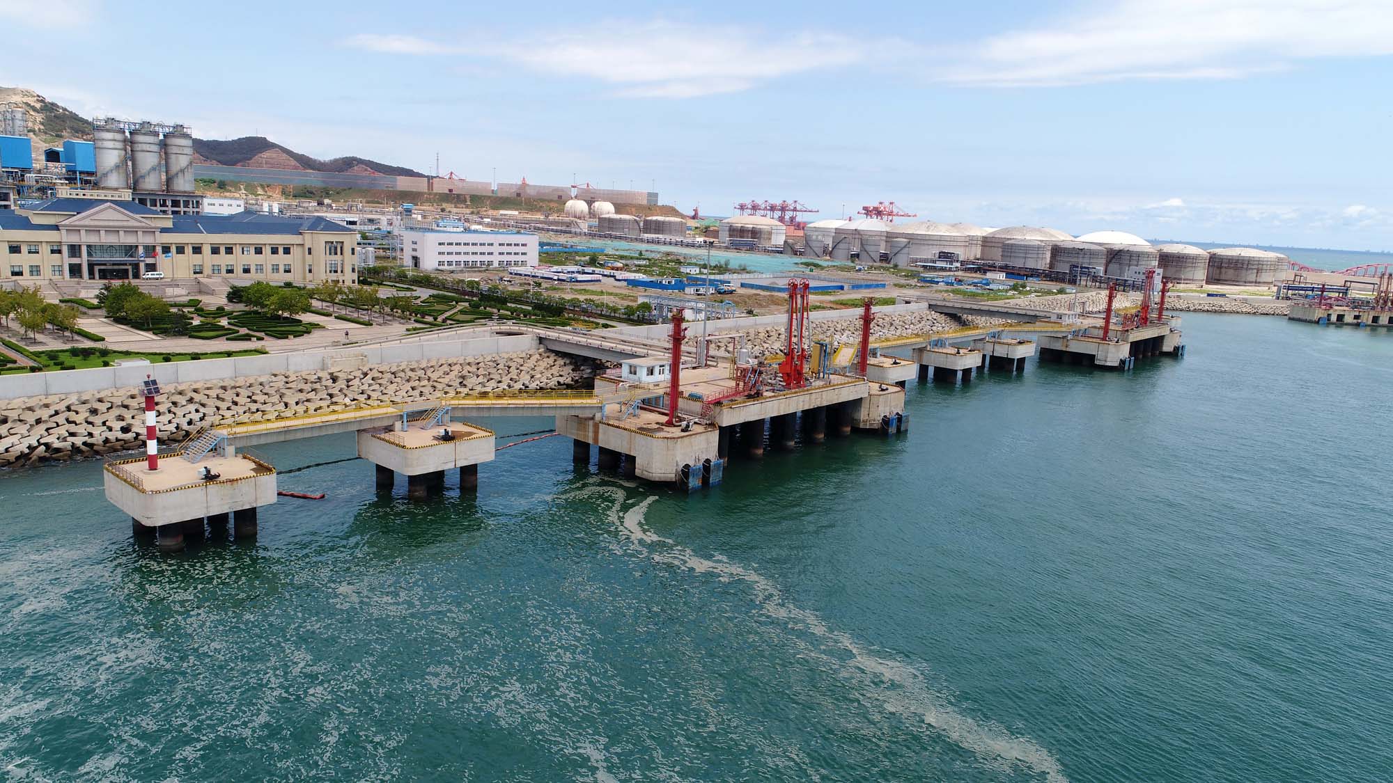 二期配套建设5千吨级液体化工品泊位2个(可靠泊一艘2万吨级船舶)。